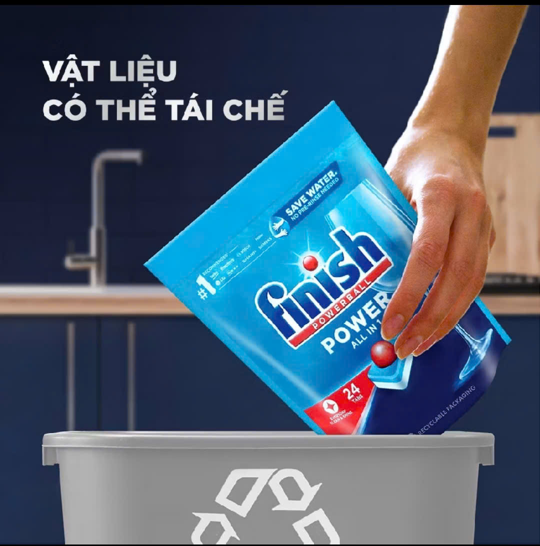 - Finish All in 1 max sinh thái cho máy rửa chén bát Finish với chứng nhận Ecolabel EU.