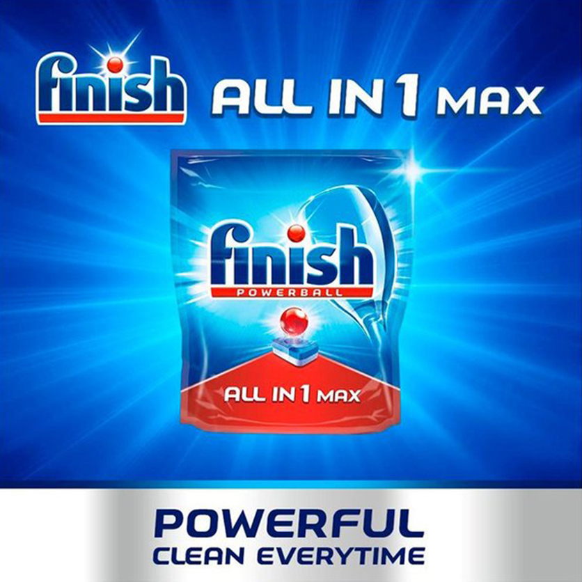 - Viên rửa chén Finish All In 1 Max Dishwasher Tablets dạng nén hoạt động tự động trợ giúp quá trình rửa tổng hợp, đảm bảo độ sáng bóng nguyên bản trên thủy tinh, tách bộ chén đĩa khỏi vết bẩn siêu việt.