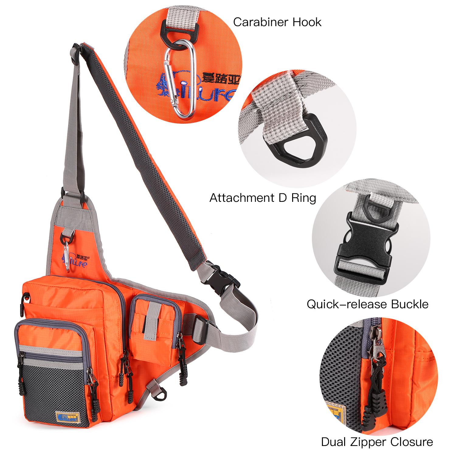 Features: Made of high quality chinlon and nylon material, water-resistant and wear-resistant. Durable PP fishing lure box with split interior space for convenient to storage baits. Adjustable shoulder strap with quick release buckle, convenient and