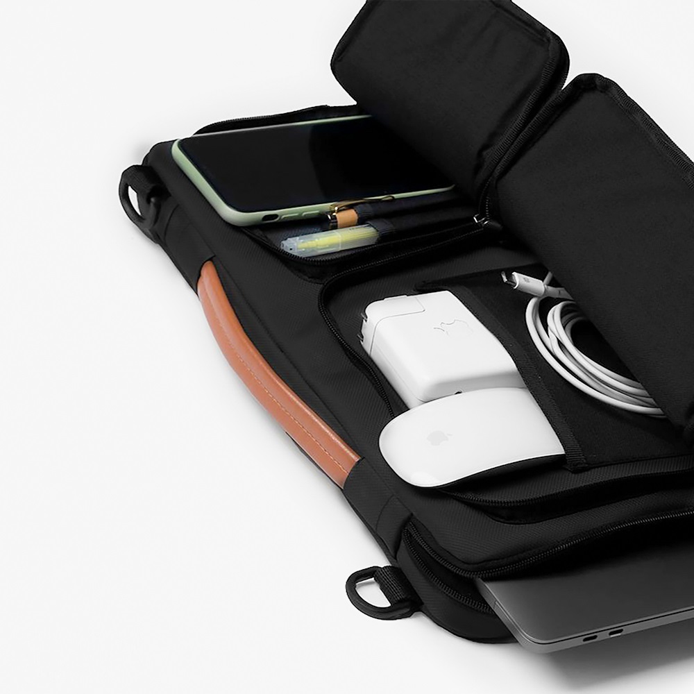 Thiết kế thanh lịch, hiện đại kiểu dáng gọn gàng, tối giản, dễ phối với nhiều phong cách từ công sở đến hàng ngày Ngăn phụ tiện lợi cho sạc, điện thoại, sổ tay, phụ