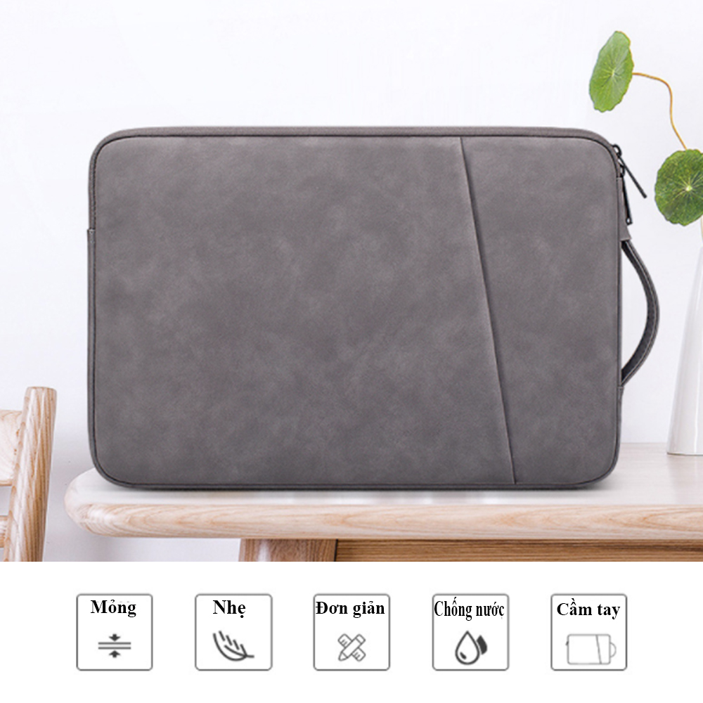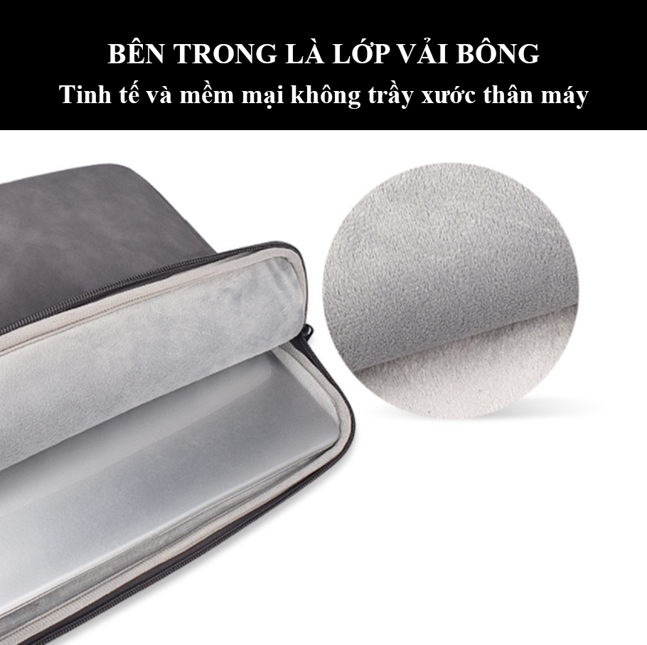 - Túi Chống Sốc dành cho Macbook Laptop - Xám Đậm được may từ chất liệu vải chống thấm nước có lớp lót lông tuyết mềm mại, đảm bảo độ dày dặn, bền đẹp. Chất liệu