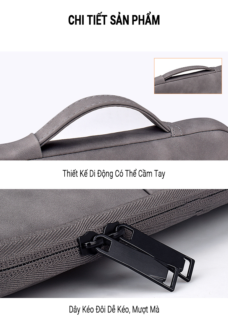 - Túi Chống Sốc dành cho Macbook Laptop - Xám Đậm được may từ chất liệu vải chống thấm nước có lớp lót lông tuyết mềm mại, đảm bảo độ dày dặn, bền đẹp. Chất liệu