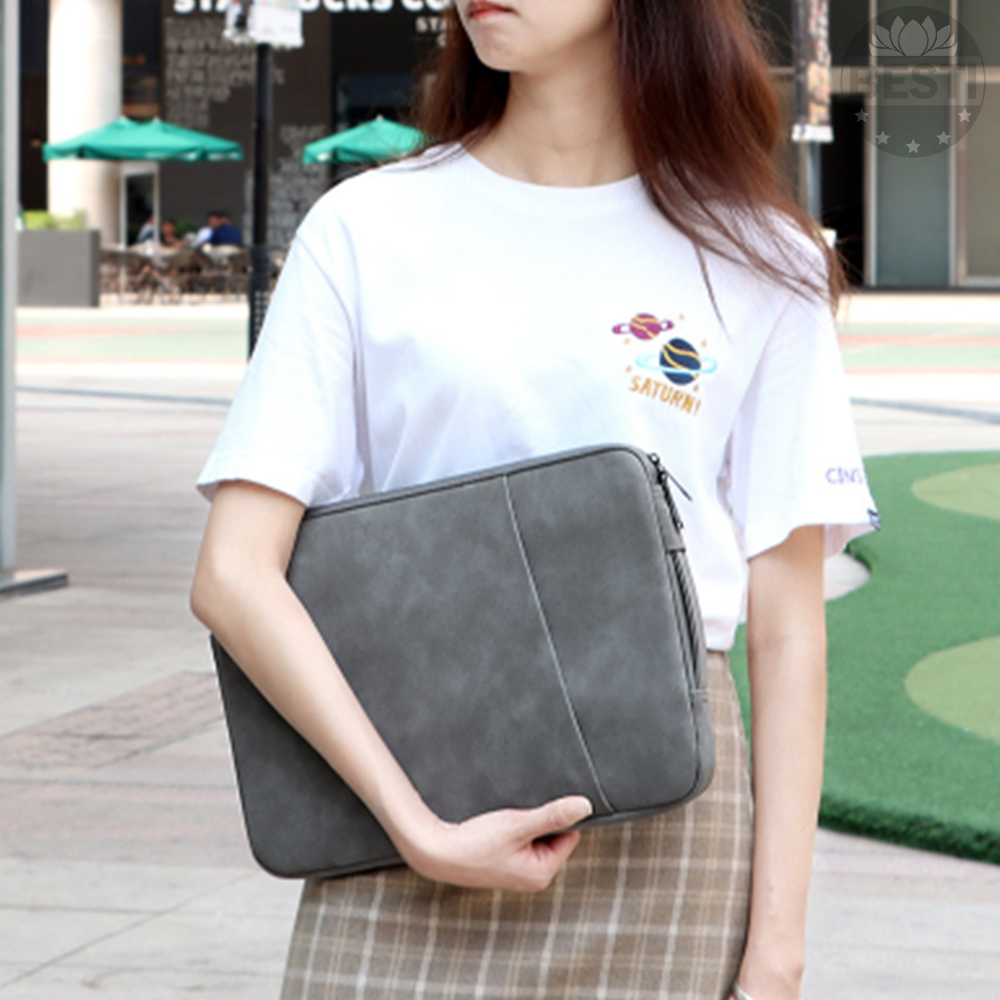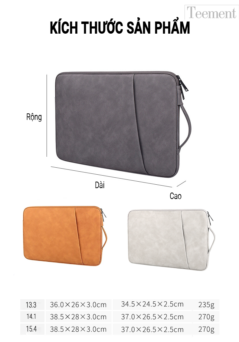 Túi Chống Sốc Laptop Teement TM01 2 Ngăn Có Quai Xách Đứng, Vân Da Mịn Chất Liệu Da Chống Thấm Nước Bảo Vệ Cho Macbook, Laptop, 13 Inch, 14 Inch, 15 Inch, 15.6 Inch- Hàng Chính Hãng
