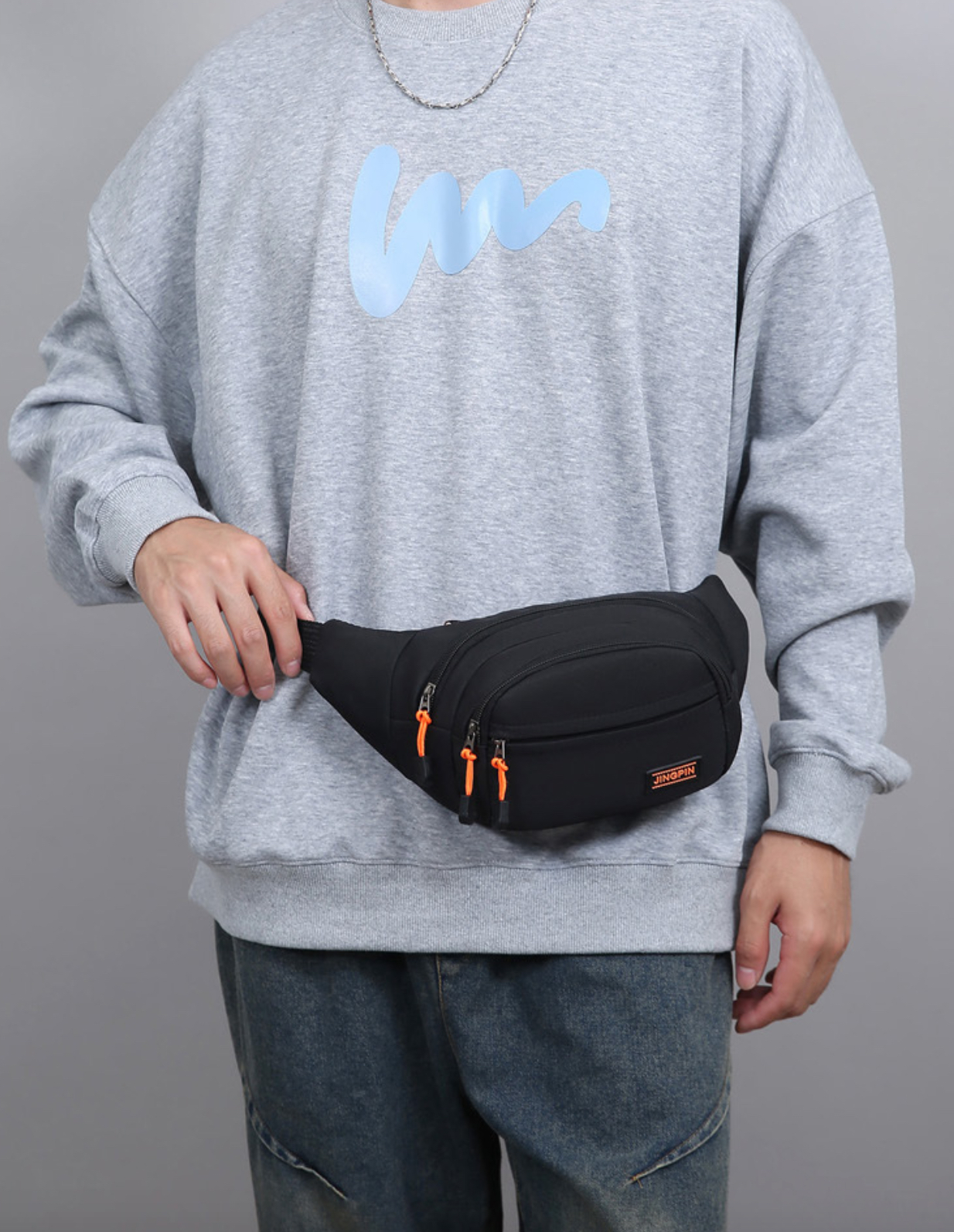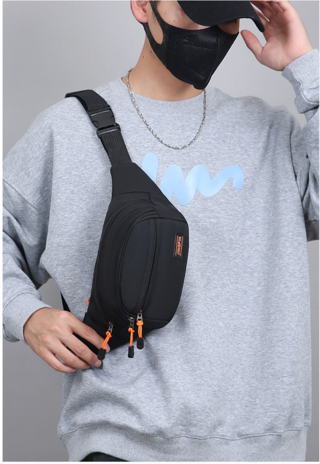 Túi Bao Tử Đeo Ngực Nhỏ Mini Trơn Màu Đen Giản Dị Dành Cho Nam Nữ Chất Liệu Nylon Chống Nước