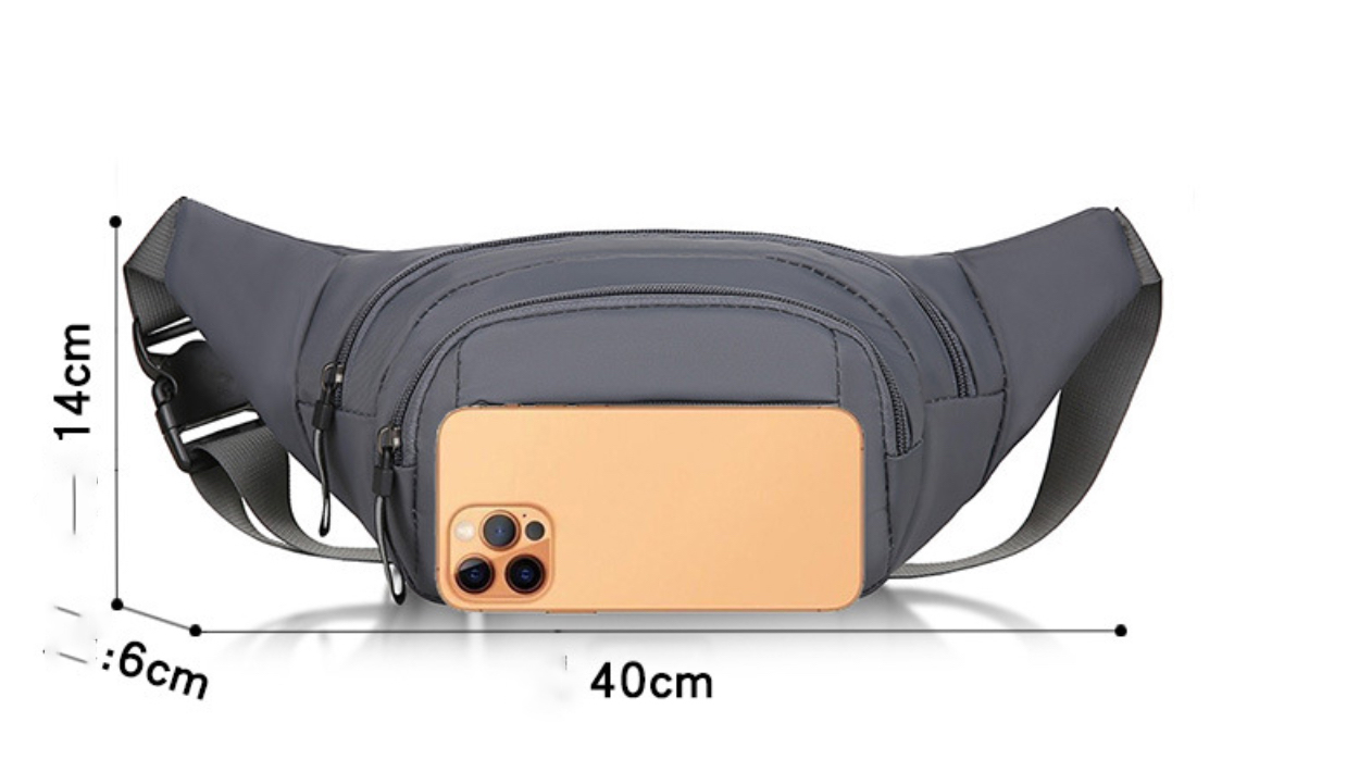 - Cấu tạo túi đeo bụng gồm có nhiều ngăn đựng đồ, tiện dụng cho bạn trong quá trình sử dụng, phân loại đồ dùng được dễ dàng hơn. - Mặt sau được làm bằng