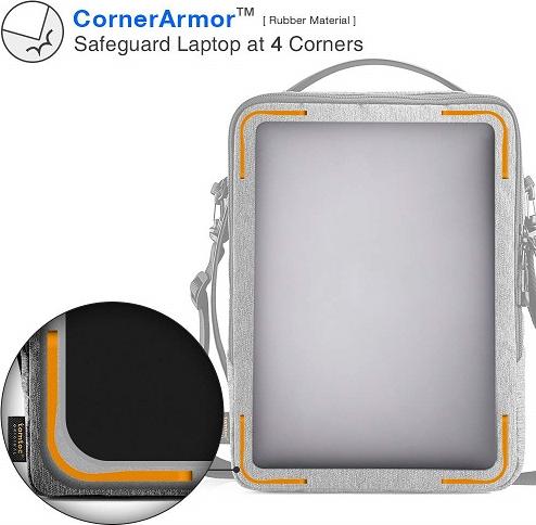 – Sử dụng công nghệ sáng chế tiên tiến của Hoa Kỳ CornerArmor trang bị phía dưới túi chống sốc một lớp đệm bảo vệ 360* xung quanh vành túi (4 góc) một cách an toàn như một túi khí xe hơi.