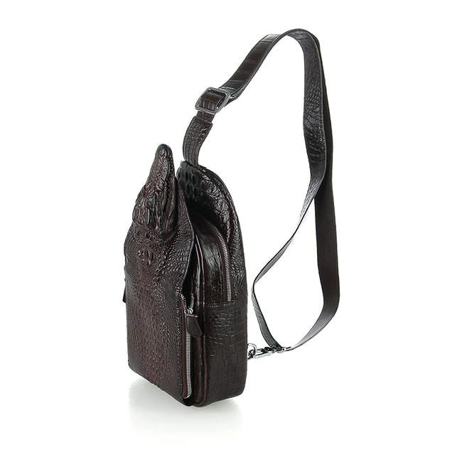 - Tên sản phẩm: Túi đeo trước nam da cá sấu Huy Hoàng đầu cá sấu màu nâu đất HP6290