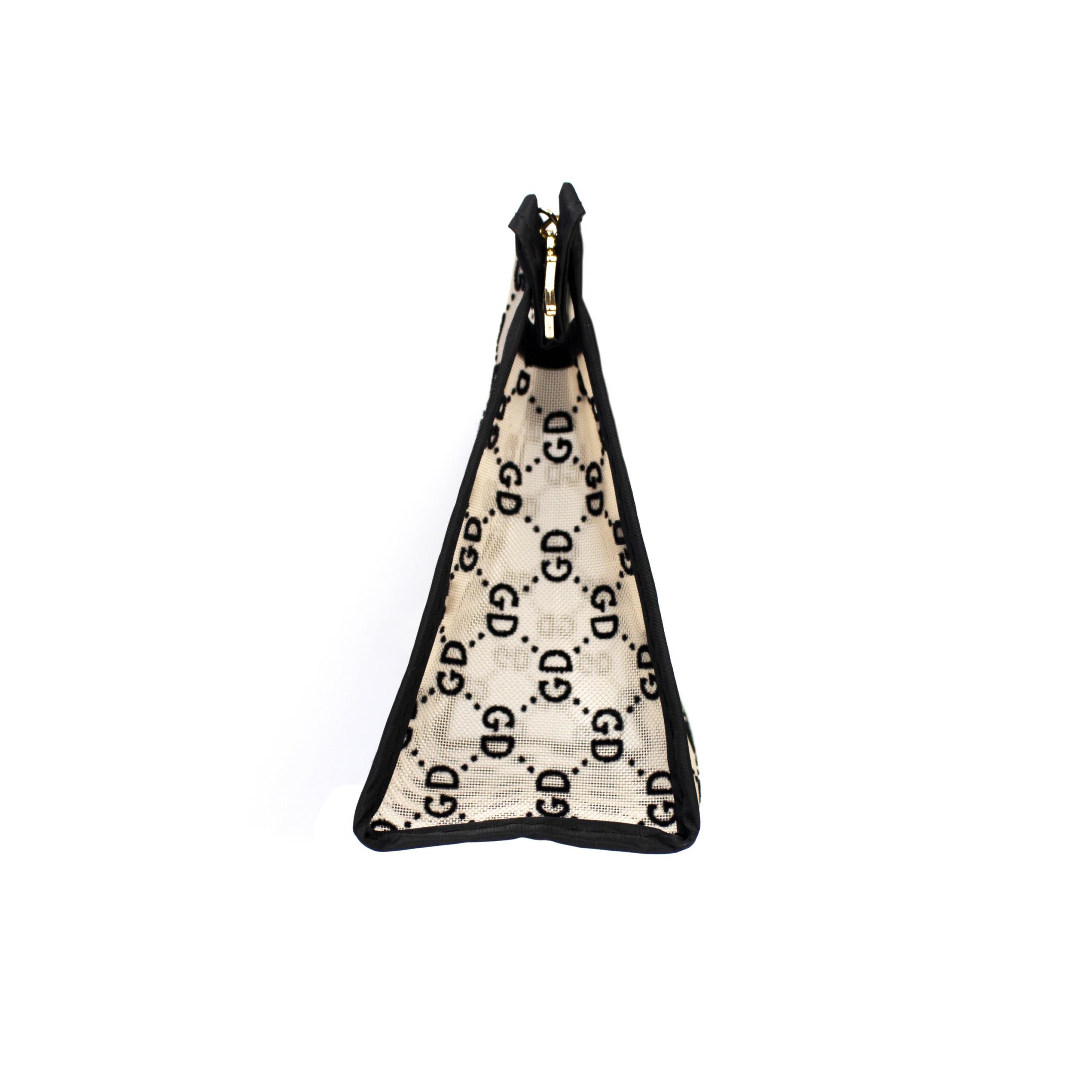 Kích thước: 21x12x13 cm Chất liệu: Nhựa nylon, khoá kéo kim loại Màu sắc: Màu kem họa tiết đen Số ngăn: 1 ngăn lớn Mô tả sản phẩm: Túi đựng mỹ phẩm cao cấp họa tiết hiện đại Care4u