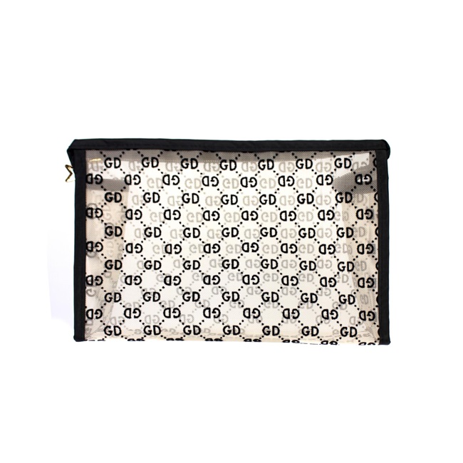 Kích thước: 22x6x13 cm Chất liệu: Nhựa nylon, khoá kéo kim loại Màu sắc: Màu kem họa tiết đen Số ngăn: 1 ngăn lớn Mô tả sản phẩm: Túi đựng mỹ phẩm cao cấp họa tiết hiện đại Care4u