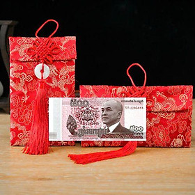 ✨Túi gấm màu hồng loại 500 Cambodia sưu tầm, làm quà tặng