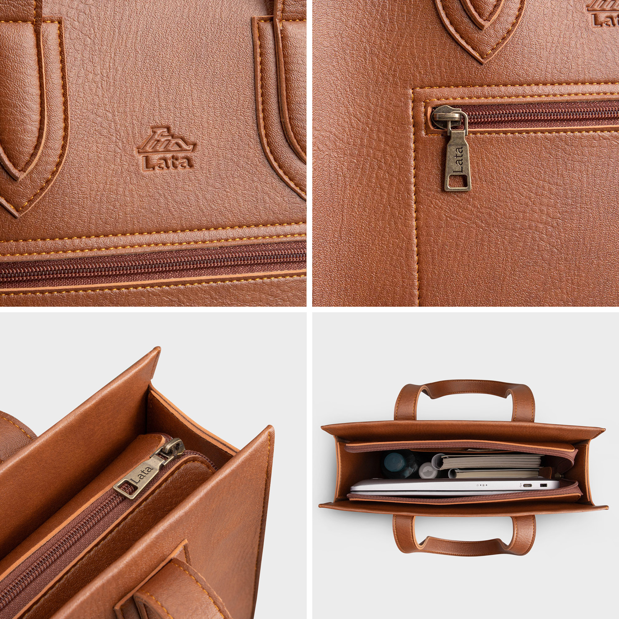 Túi xách da nữ công sở thời trang Lata TX16 với thiết kế dáng ngang cổ điển, màu sắc trung tính, kích thước rộng rãi mang đến thoải mái, tiện dụng cho người đeo. Túi