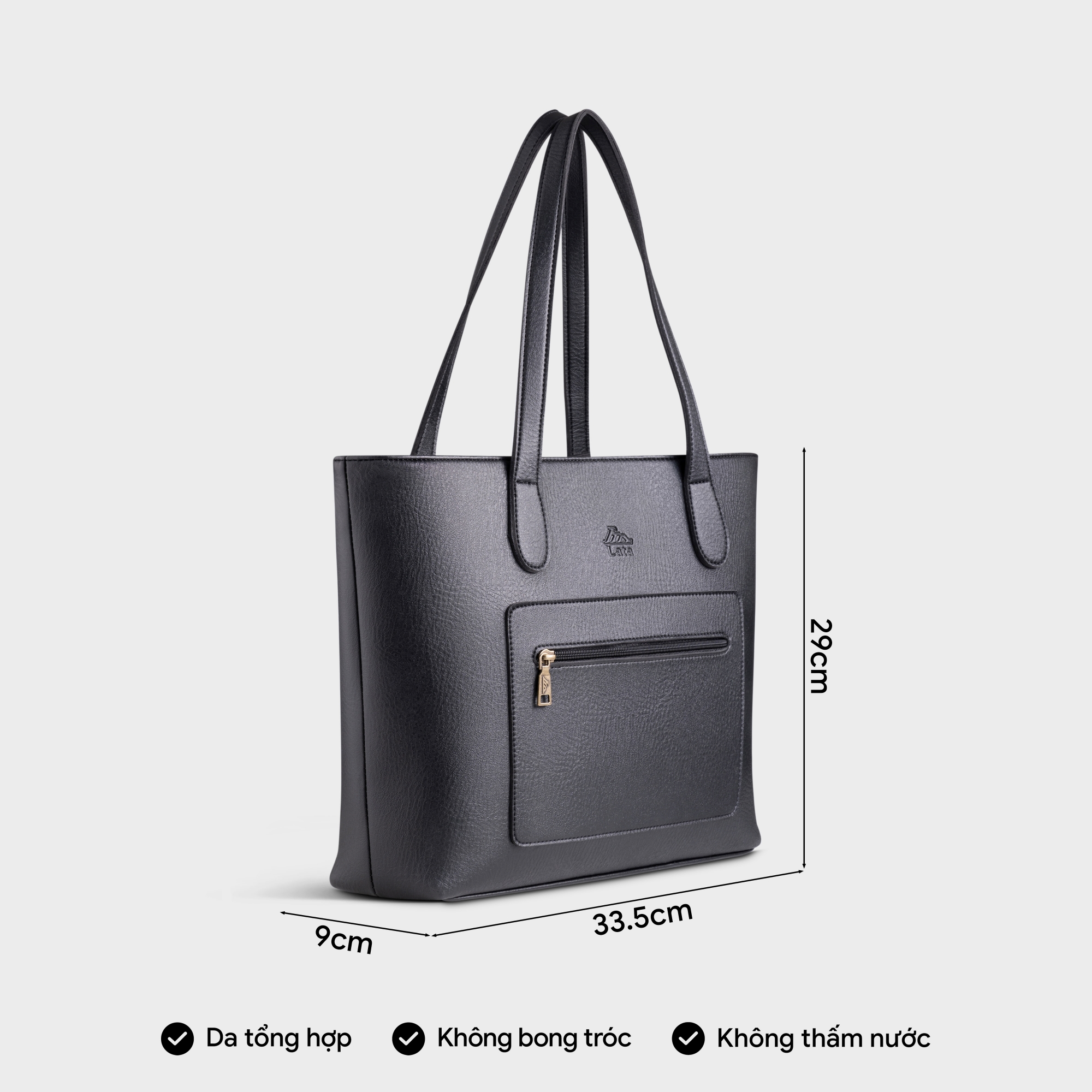 Túi xách da nữ công sở thời trang Lata TX16 với thiết kế dáng ngang cổ điển, màu sắc trung tính, kích thước rộng rãi mang đến thoải mái, tiện dụng cho người đeo. Túi được làm từ chất liệu da tổng hợp cao cấp mềm mại, không bong tróc, bền màu và dễ vệ sinh. Túi có ngăn chứa lớn, đựng được tài liệu khổ A4. Mặt trước túi còn có 1 ngăn phụ có khóa kéo, thích hợp đựng chìa khoá, thẻ xe. Đây là kiểu túi xách mà bạn có thể dễ dàng phối với nhiều loại trang phục, thích hợp dùng khi đi làm, đi du lịch, đi dạo phố…