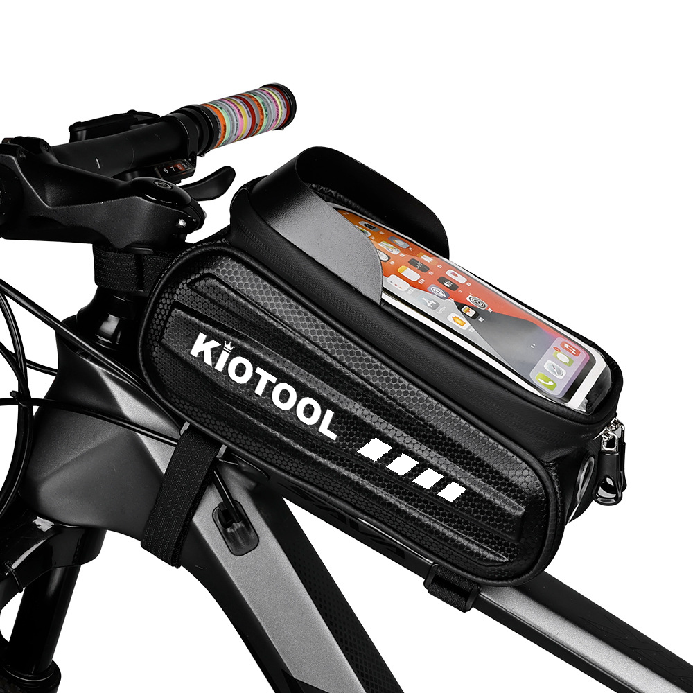 Túi treo sườn xe đạp vỏ cứng chống nước Kiotool đựng điện thoại Thương hiệu: Kiotool Tên sản phẩm: Túi treo sườn xe đạp Màu đen Trọng lượng: khoảng 170g Chất liệu: EVA + Polyester