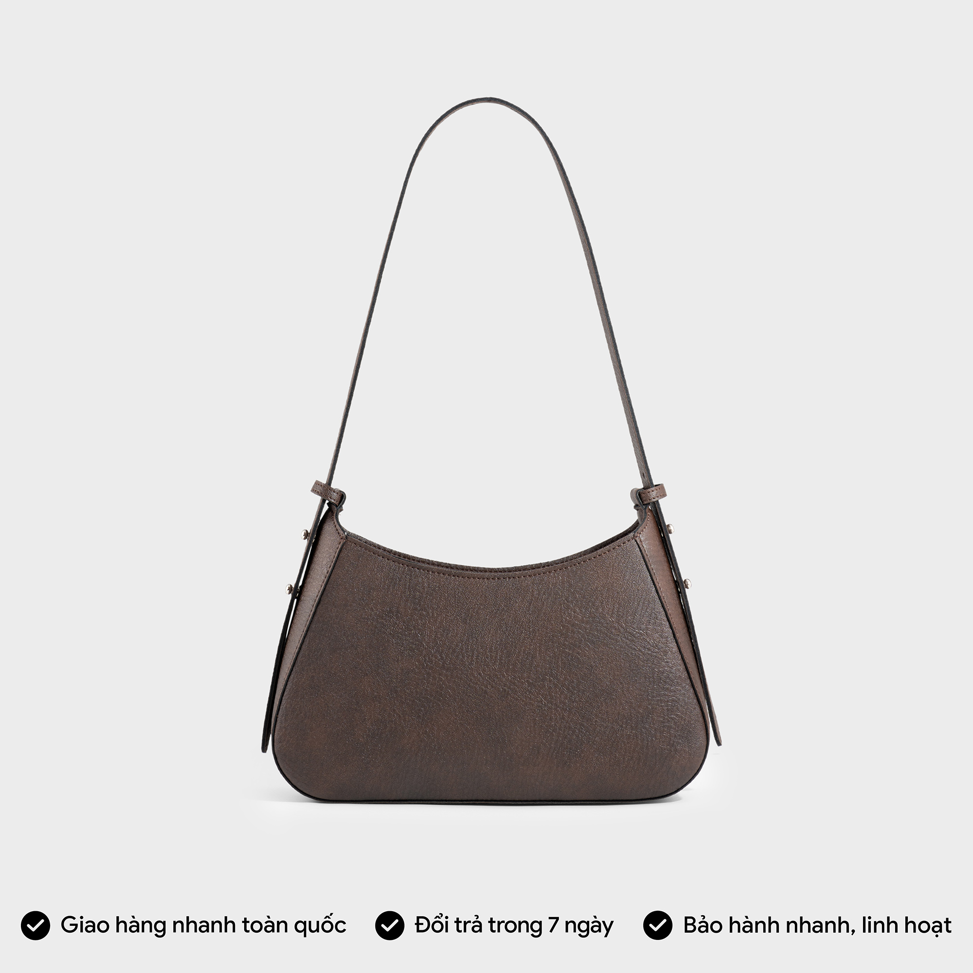 THIẾT KẾ NỔI BẬT - DÁNG CHUẨN FORM - Thiết kế túi hình bán nguyệt nữ tính, hiện đại, cùng chất liệu da chống trầy, chống bám nước. - Khóa gài trang trí cách