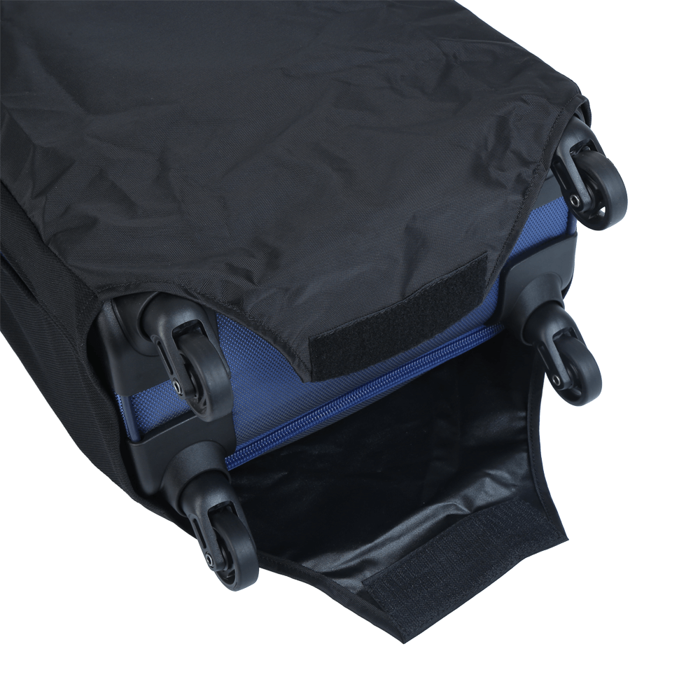 Thiết kế bao trùm được cả chiếc vali của bạn nhưng vẫn còn chừa không gian cho bánh xe di chuyển và tay xách cũng như cần kéo giúp bạn dễ dàng thao tác kéo đẩy vali. Đặc biệt bên dưới bao trùm vali có miếng dán cố định giúp bao trùm vali thêm chắc chắn.