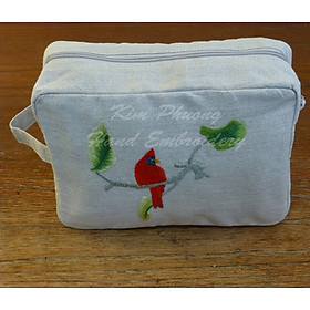 Sản phẩm Túi mỹ phẩm nhỏ thêu tay Mẫu CỌ CỔ ĐỎ Vải Linen Màu vải Trắng Kích thước chung Dài 23cm x Rộng 16cm x Cao (Đáy) 4cm Hình dạng Chữ nhật, có