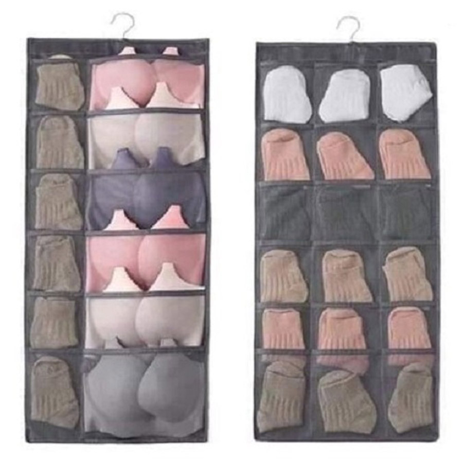 - Thiết kế 2 mặt chia làm 30 ngăn, có thể treo lên móc treo trong tủ quần áo
