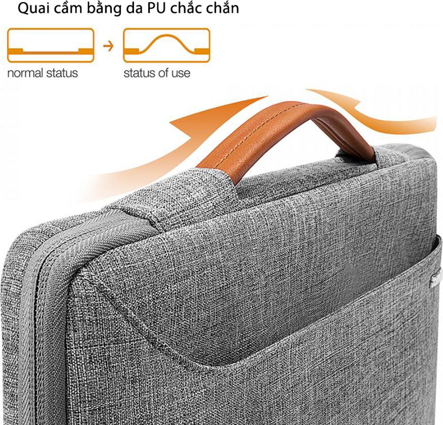 Với túi xách chống sốc MacBook Pro 15” 2018 TOMTOC (USA) Spill-resistant chiếc túi chống sốc sẽ nhanh chóng biến thành một chiếc túi xách thời trang nhỏ gọn khi cách điệu thêm một quai cầm chắc chắn bằng da PU phía trên giúp tiện lợi hơn cho việc di chuyển.