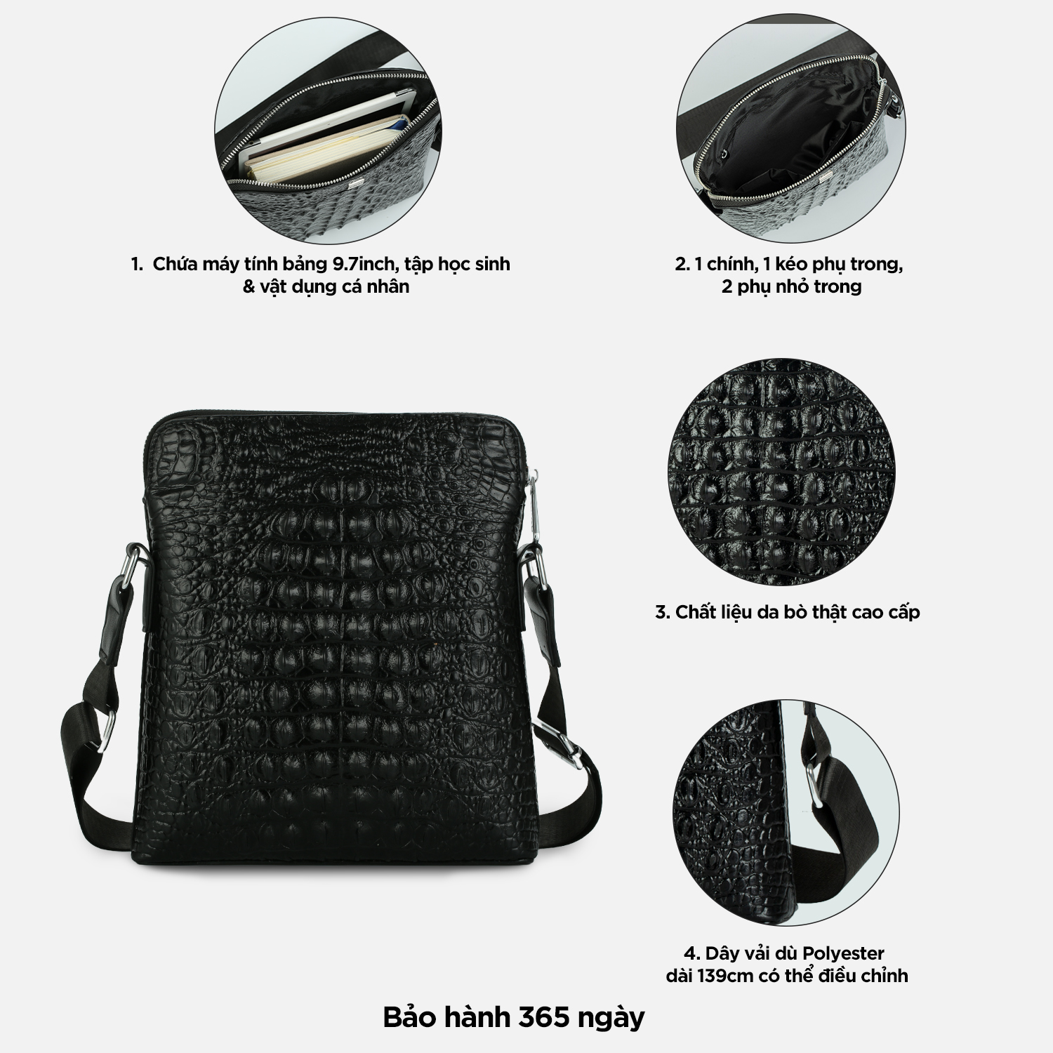 Túi đeo chéo công sở da thật, túi đeo vai nam du lịch đựng máy tính bảng 9.7 inch hoạ tiết vân cá sấu này thích hợp cho cho các bạn mang đi làm, đi du lịch, đi học, đi chơi hay dạo phố cùng bạn bè...