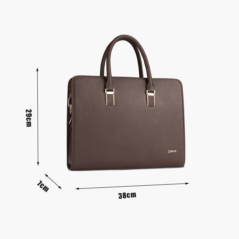 THÔNG TIN SẢN PHẨM Xuất Xứ: Gence Việt Nam - Da thật, Giá trị thật Mã Hàng: GCE26 Kích Thước: 39cm(Dài) x 30cm (Cao) x 7.5cm (Dày) Chất Liệu: Da bò Swift Màu Sắc: Nâu