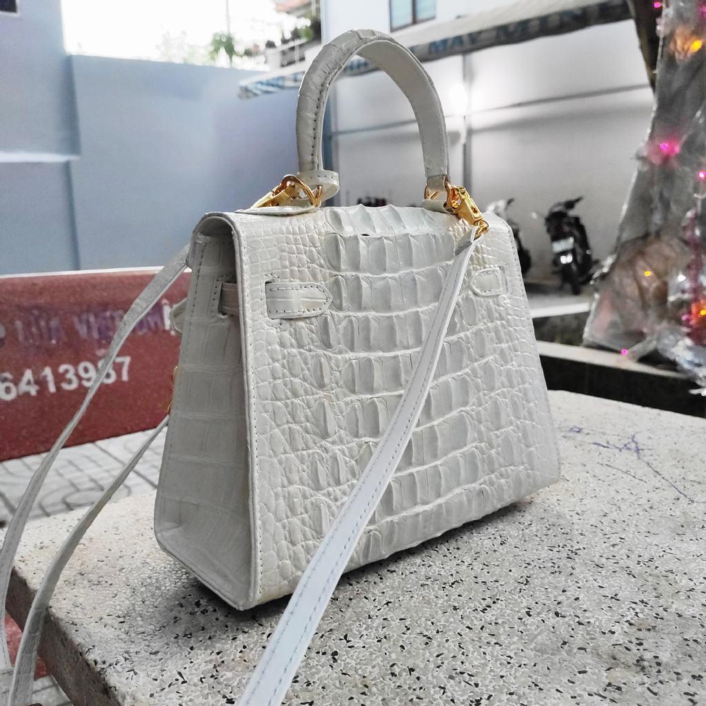 ✨Túi xách nữ size 25 có dây đeo. Da cá sấu BẠCH TẠNG - ĐẸP TINH KHIẾT!