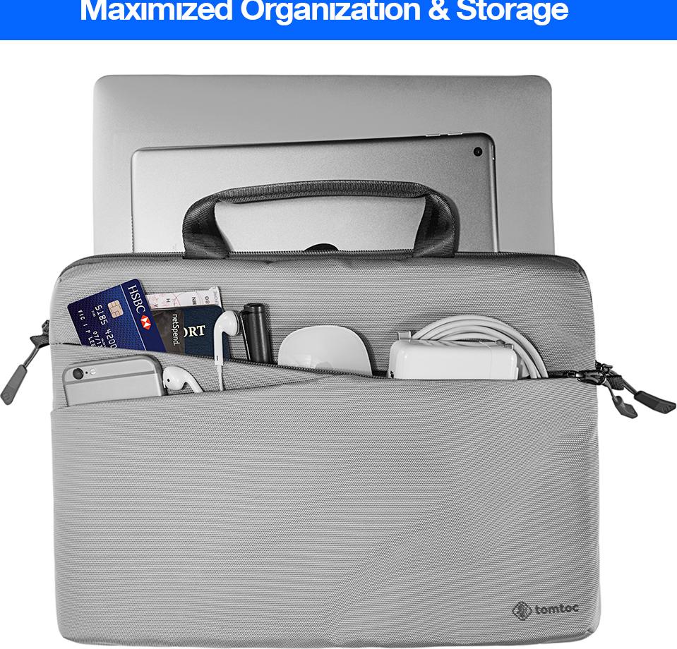 - Thiết kế mỏng gọn, dễ dàng mang theo hoặc cất trong balo - Công nghệ CornerArmor độc quyền – chống sốc hiệu quả ở bốn góc - Lớp đệm dày chống va đập, bên trong lót mềm chống trầy xước - Chất liệu vải polyester cao cấp – chống nước nhẹ, bền bỉ theo thời gian - Dây kéo YKK bền, mượt – đảm bảo an toàn và tăng tuổi thọ sử dụng - Ngăn phụ rộng rãi – chứa sạc, chuột, dây cáp và phụ kiện nhỏ tiện lợi - Trọng lượng nhẹ – dễ mang theo trong mọi hành trình - Phong cách tối giản, hiện đại – phù hợp cho làm việc, học tập, di chuyển - Thương hiệu Tomtoc uy tín – đạt chứng nhận bảo vệ tiêu chuẩn quân đội MIL-STD-810G LƯU Ý KHI MUA HÀNG Cảm ơn quý khách đã quan tâm đến sản phẩm bên