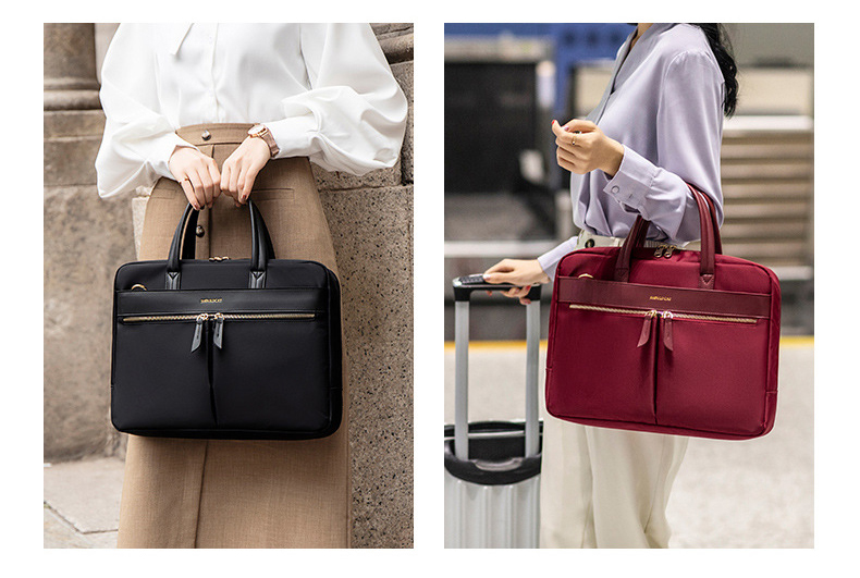 Thiết kế thanh lịch, hiện đại kiểu dáng gọn gàng, tối giản, dễ phối với nhiều phong cách từ công sở đến hàng ngày Ngăn phụ tiện lợi cho sạc, điện thoại, sổ tay, phụ