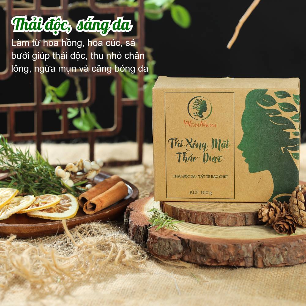 Mua tại Tiktok- Giới thiệu: Túi xông mặt thảo dược Wonmom với thảo mộc thiên nhiên: Hoa hồng, bạch chỉ, tía tô, ngải cứu, bạc hà, sả, chanh và một số thảo dược khác. Dây chuyền sản xuất khép kín, đảm bảo chất lượng.