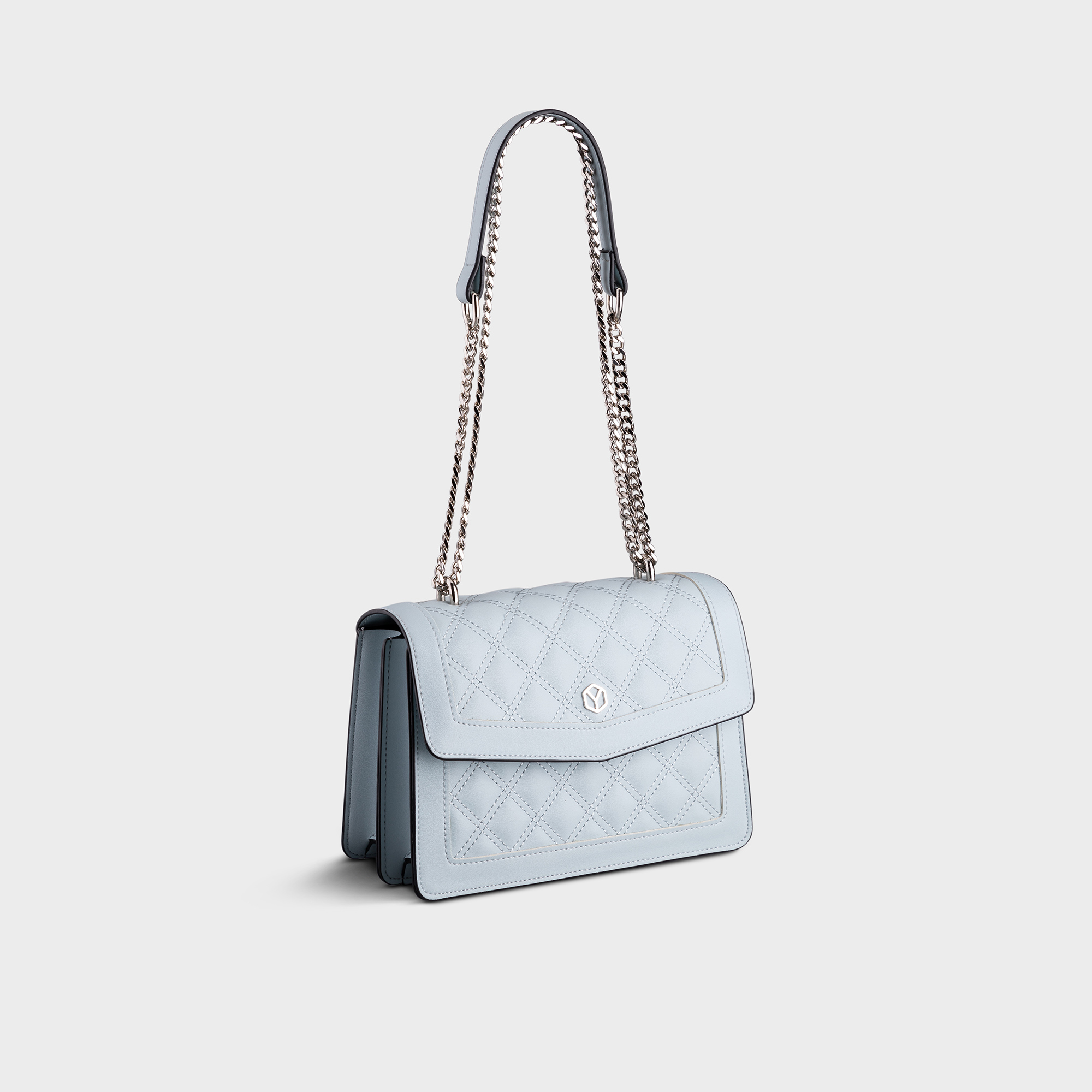 Mẫu túi đeo chéo Yuumy Seasand YN280 thời thượng với thiết kế chần bông quả trám sang chảnh và dây đeo kim loại ánh bạc tinh tế. Chất da mềm mại, form túi vừa vặn,