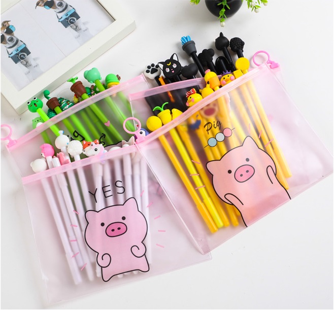 Hãy làm cho góc học tập hay bàn làm việc của bạn trở nên sinh động, dễ thương và gọn gàng hơn với Combo 2 túi đựng bút bóp viết có khóa zip heo hồng