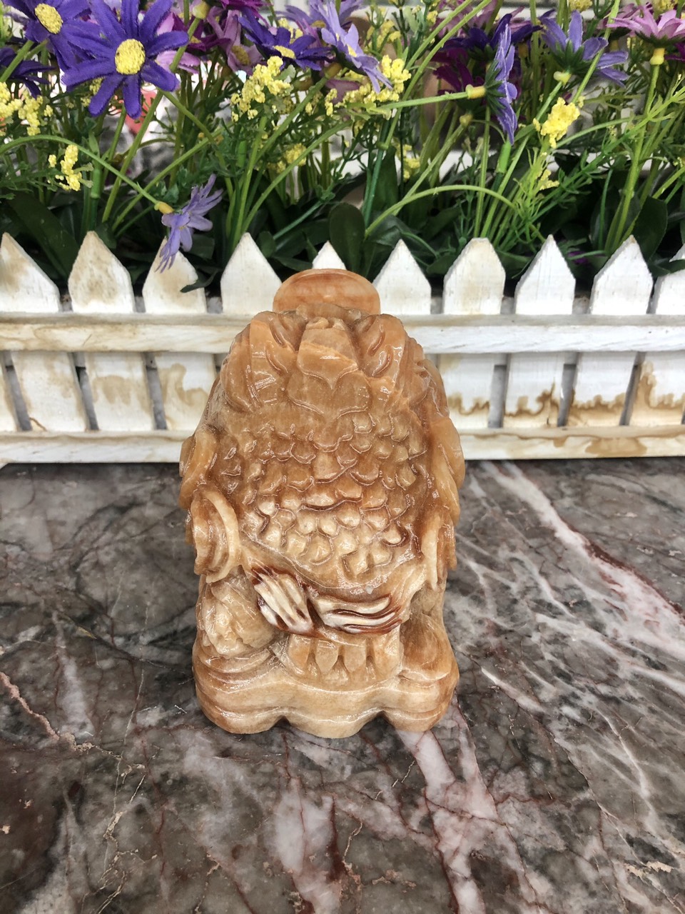 Chất liệu: Đá cẩm thạch trắng Kích thước: Dài 13 cm x Rộng 7 cm x Cao 20 cm Khối lượng: 4 kg Theo quan niệm phương Đông, cá chép tượng trưng cho sức khỏe