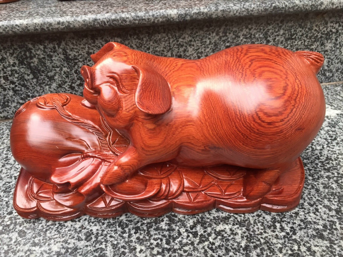 Đỉnh Cao Nghệ Thuật Điêu Khắc Tượng Gỗ. Tượng Heo Tài Lộc Gỗ Trắc Đỏ Đen Liền Khối