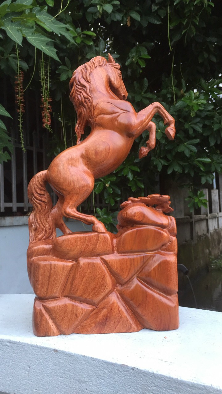 _ Tượng con ngựa nhất mã phi thiên được trạm khắc vô cùng tỉ mỉ tinh sảo kỳ công đi hầu hết tất cả mọi chi tiết góc ngách nội dung hoa văn của tượng đều được ngọt tỉa chỉnh sửa hoàn toàn bằng tay thủ công .Đồng thời tượng được kiểm định rất kỹ lưỡng như cho vào thẩm sấy cho gỗ khô kiệt .Mục đích trống dập nứt vênh mo mối mọt .Kết hợp với trà nhám đánh giấy giáp nhiều lần cho sạch sẽ ,sờ mát lạnh ,Song cho vào phun lót làm bóng mờ để giữ lại mầu sắc vân gỗ tự nhiên .Tượng được làm và hoàn thiện do bàn tay khối óc tài hoa từ những người thợ giàu kinh nghiệm cũng như tay nghề cao trong làng nghề truyền thống .Chính vì thế tượng con ngựa đã đáp ứng đầy đủ những tiêu trí ( Đẹp bền rẻ ) Thẩm mỹ nghệ thuật với chất lượng tuyệt vời