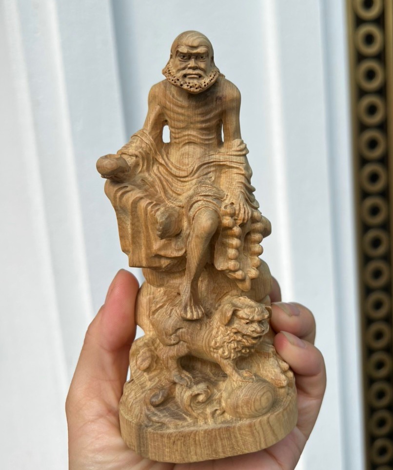 ✨TƯỢNG ĐẠT MA SƯ TỔ TRẤN SƯ TỬ BẰNG GỖ BÁCH XANH KT CAO 30CM