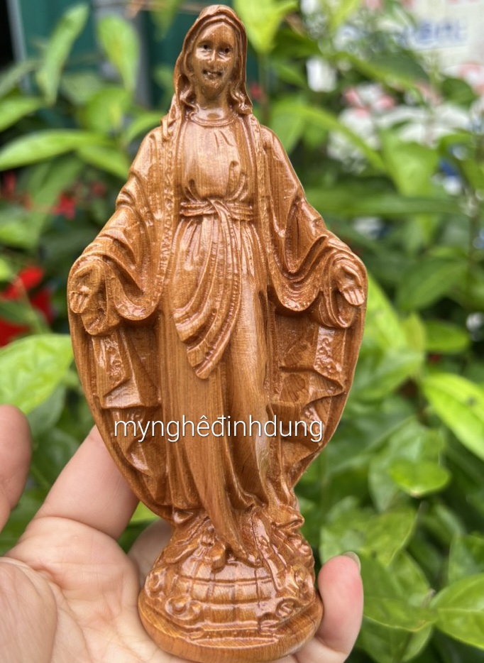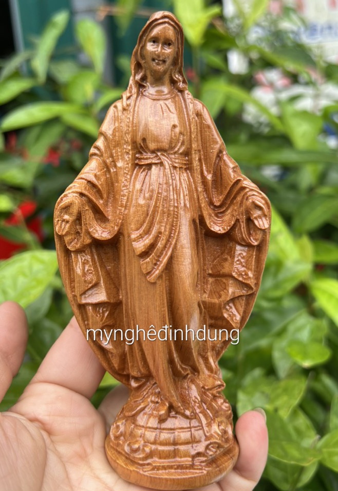 Tượng đức mẹ bạn ơn được làm bằng chất liệu gỗ bách xanh liền khối tự nhiên 100% kt cao 20x8x6cm _ Tượng được chạm khắc gọt tỉa vô cùng ti mỉ tinh xảo kỳ công. Đi hầu hết tất mọi chi tiết góc ngách nội dung hoa văn của tượng đều được gọt tỉa chỉnh sửa sắc nét hoàn toàn bằng tay thủ công truyền thống.