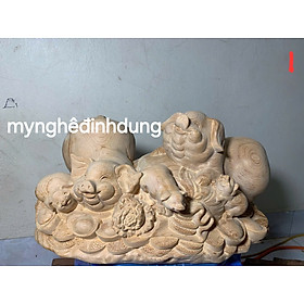 Tượng gỗ mỹ nghệ trạm con heo ôm bao tiền cười vui híp mắt gỗ gõ Dài 30cm x Cao 17cm x Ngang 14cm ý nghĩa biểu tượng giàu sang phú quý ạ - Tượng