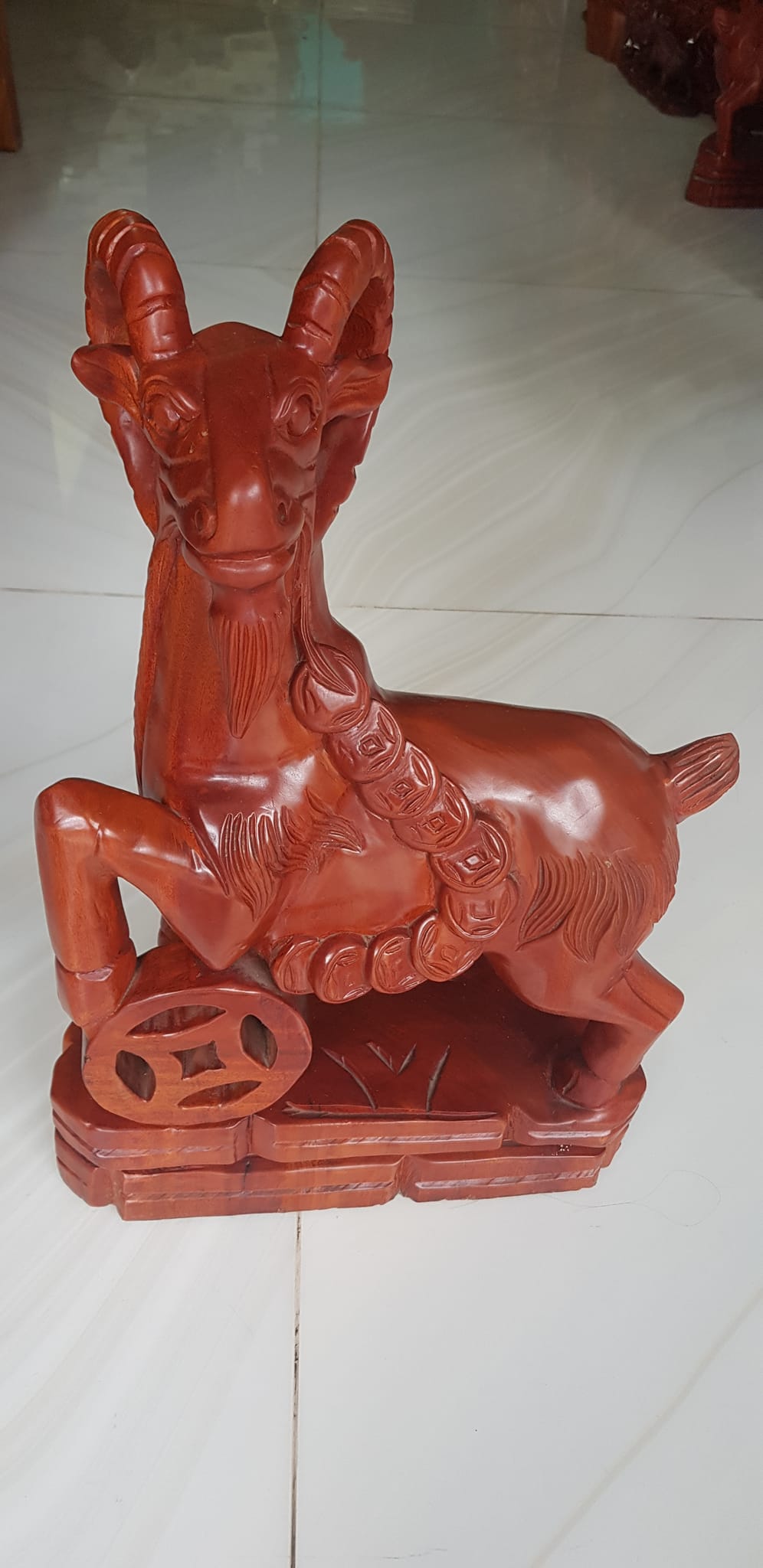 Tượng Gỗ Mỹ Nghệ trạm hình Con Dê đứng tiền màu đỏ đẹp cao 50cm ngang30cm sâu 15cm Shop Sunny Quận 8