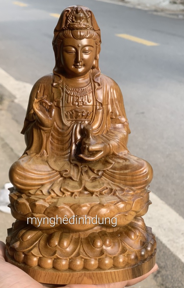 Tượng Phật Bà Quan Âm Gỗ Bách Xanh - Tượng Gỗ Để Ô Tô
