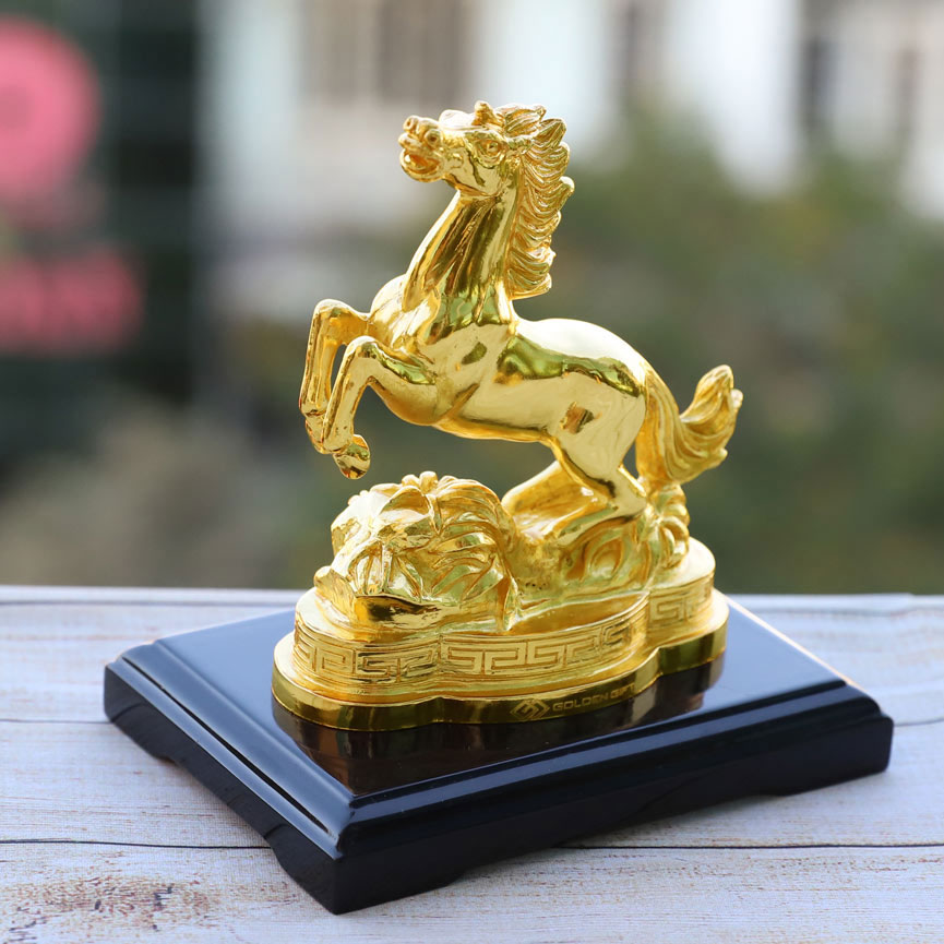 Tượng Ngựa phong thủy mạ vàng do Golden Gift Việt Nam chế tác hoàn toàn thủ công tại Việt Nam. Hình ảnh chú ngựa vốn đã hết sức thân thuộc trong cuộc sống hàng ngày, nay lại càng trở nên sinh động dưới bàn tay của người thợ tài hoa.