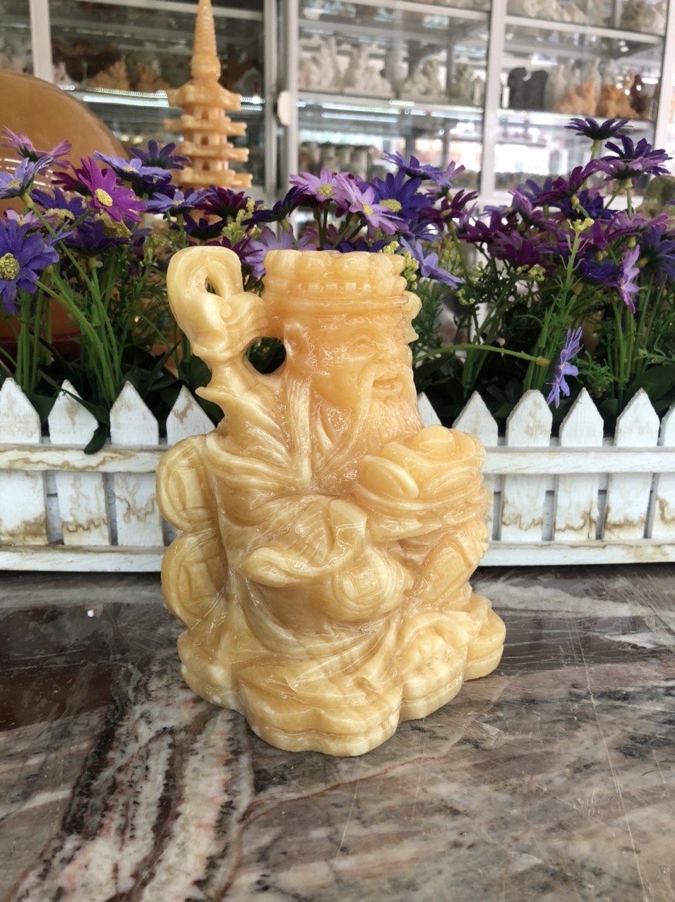✨Tượng ông Thần Tài kim tiền, thần phát, thần tiền cầm thỏi vàng phong thủy đá ngọc hoàng long đặt bàn thờ thần tài thổ địa