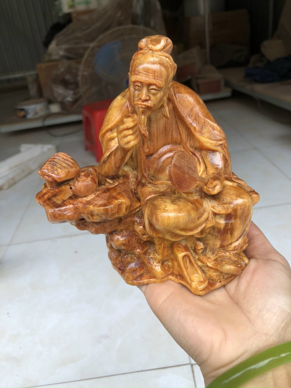 ✨Tượng ông thần trà bằng gỗ huyết long mọng dầu kt 15×15×9cm