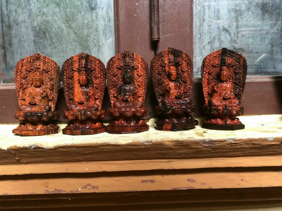 _Tượng phật bà quan âm bồ tát khắc hai mặt được làm bằng chất liệu gỗ trắc đỏ đen tự nhiên 100%