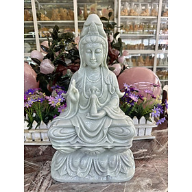 ✨Tượng Phật Bà Quan Thế Âm Bồ Tát ngồi đài sen cầu bình an đá cẩm thạch trắng xanh - Cao 40 cm