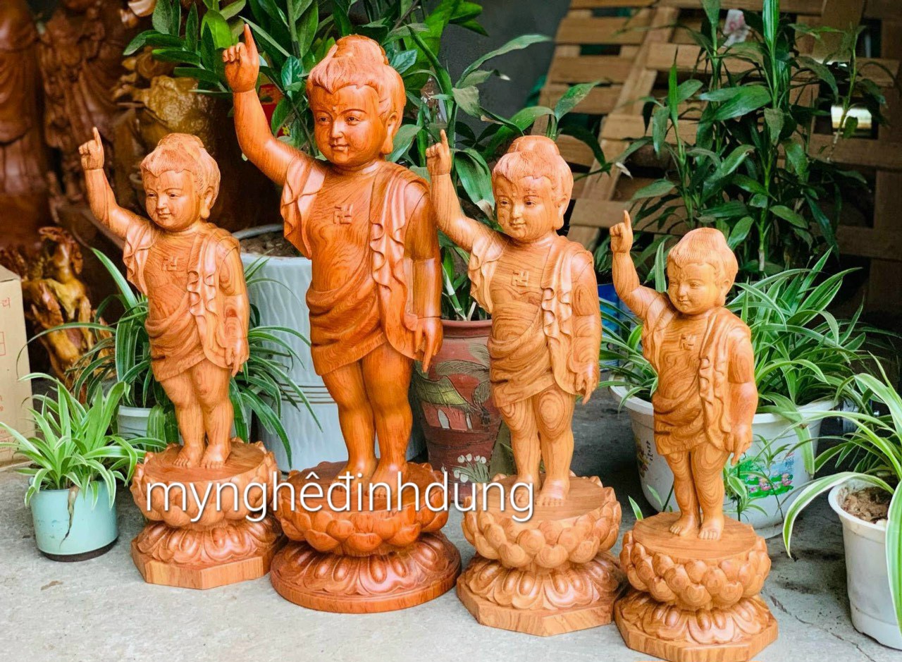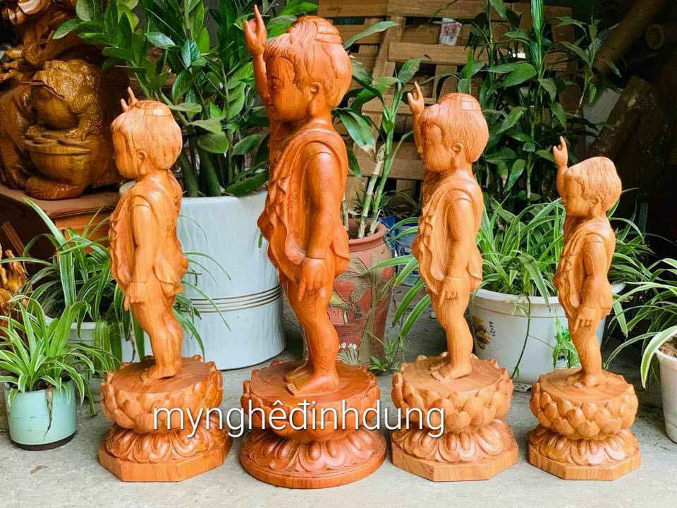 Tượng phật đản sinh được làm bằng chất liệu gỗ hương đá liền khối tự nhiên 100% Kt cao 40×15×15cm _ Tượng được chạm khắc gọt tỉa vô cùng ti mi tinh xảo kỳ công. Đi hầu hết tất mọi chi tiết góc ngách nội dung hoa văn của tượng đều được gọt tỉa chỉnh sửa sắc nét hoàn toàn bằng tay thủ công , TƯỢNG CHẾ TÁC LÀM VÀ HOÀN THIỆN TỪ BÀN TAY KHỐI ÓC TÀI HOA VÀ NHỮNG NGƯỜI THỢ CÓ TAY NGHỄ CAO TRONG LÀNG NGHỄ TRUYỀN THỐNG