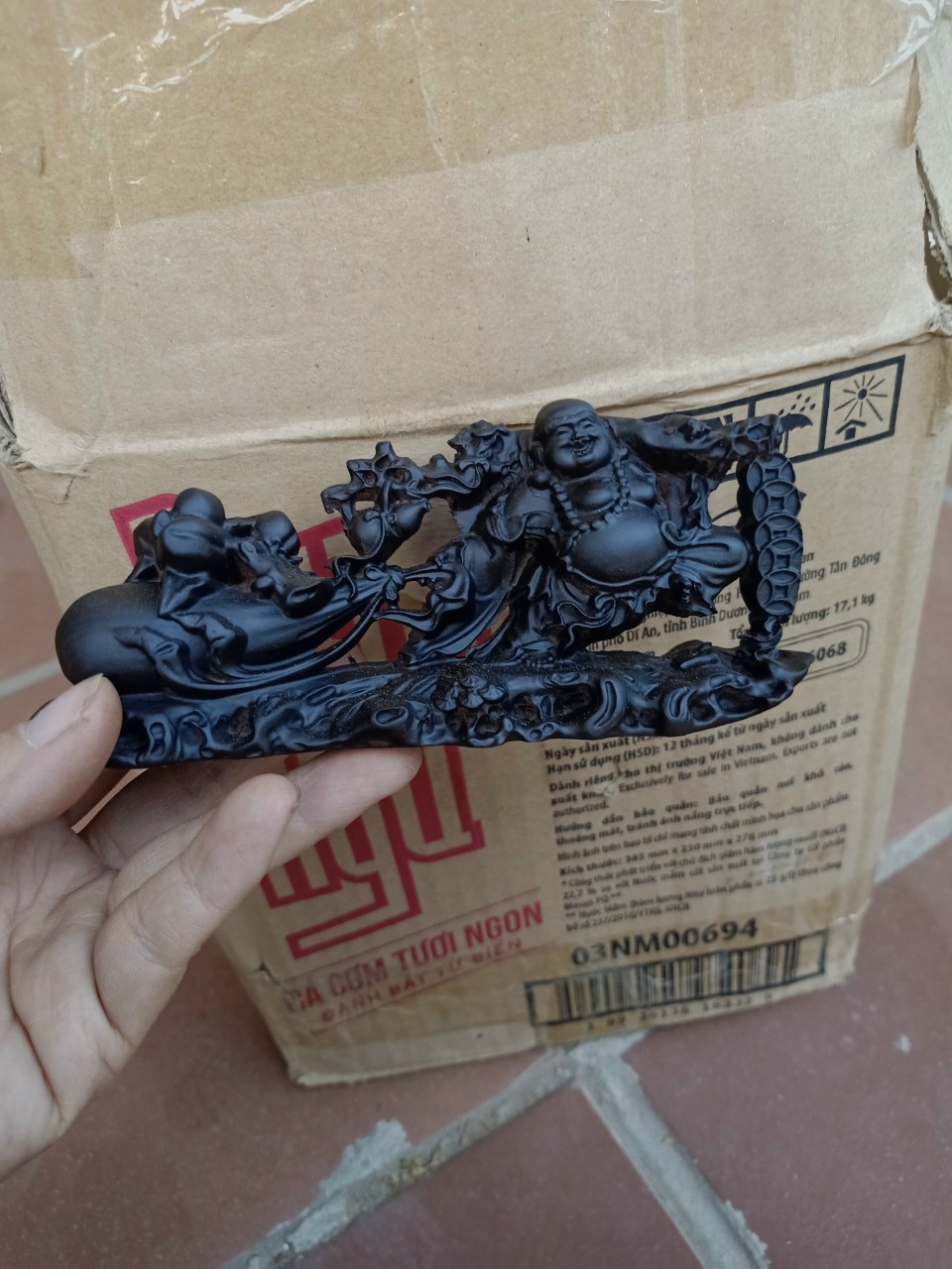 _ Tượng phật di lặc được làm bằng chất liệu gỗ hương đá liền khối tự nhiên 100% _ Kích thước ngang 50 cao28 sâu26cm _ Tượng phật di lặc ngũ phúc được làm và