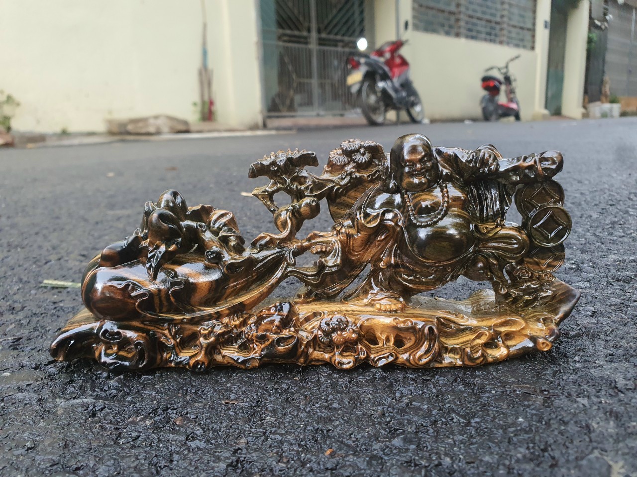 Tượng Phật Di Lặc kéo bao gỗ mun hoa | Mang tài lộc & May mắn #shorts