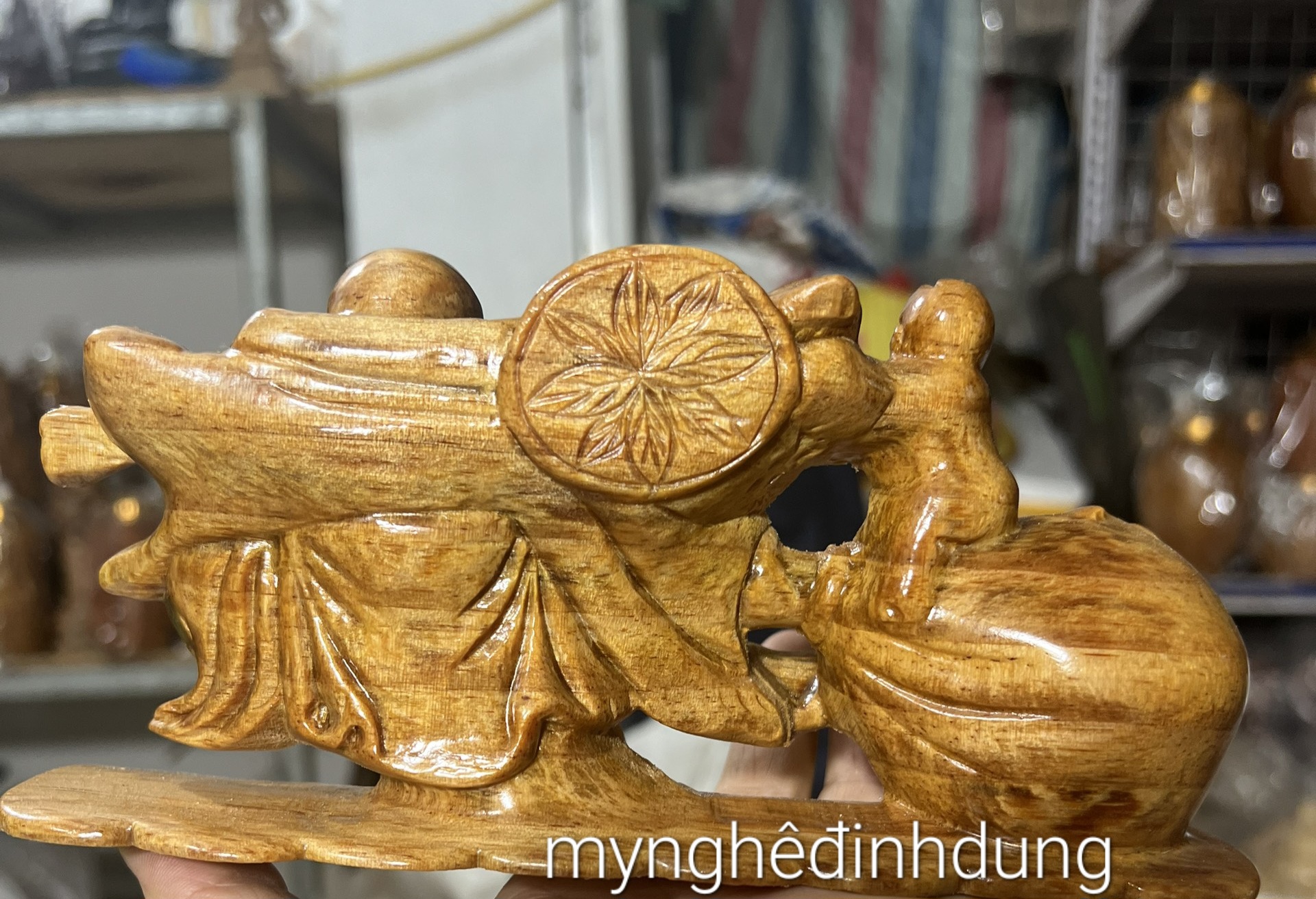 Phật di lặc kéo bao kim tài gỗ huyết long phong thủy giá 770,000VND