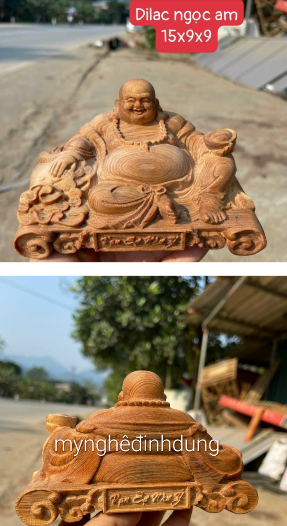 ✨Tượng phật di lặc mini để ôtô ,bàn làm việc ,bàn học ...bằng gỗ ngọc am thơm nức kt 15×9×9cm