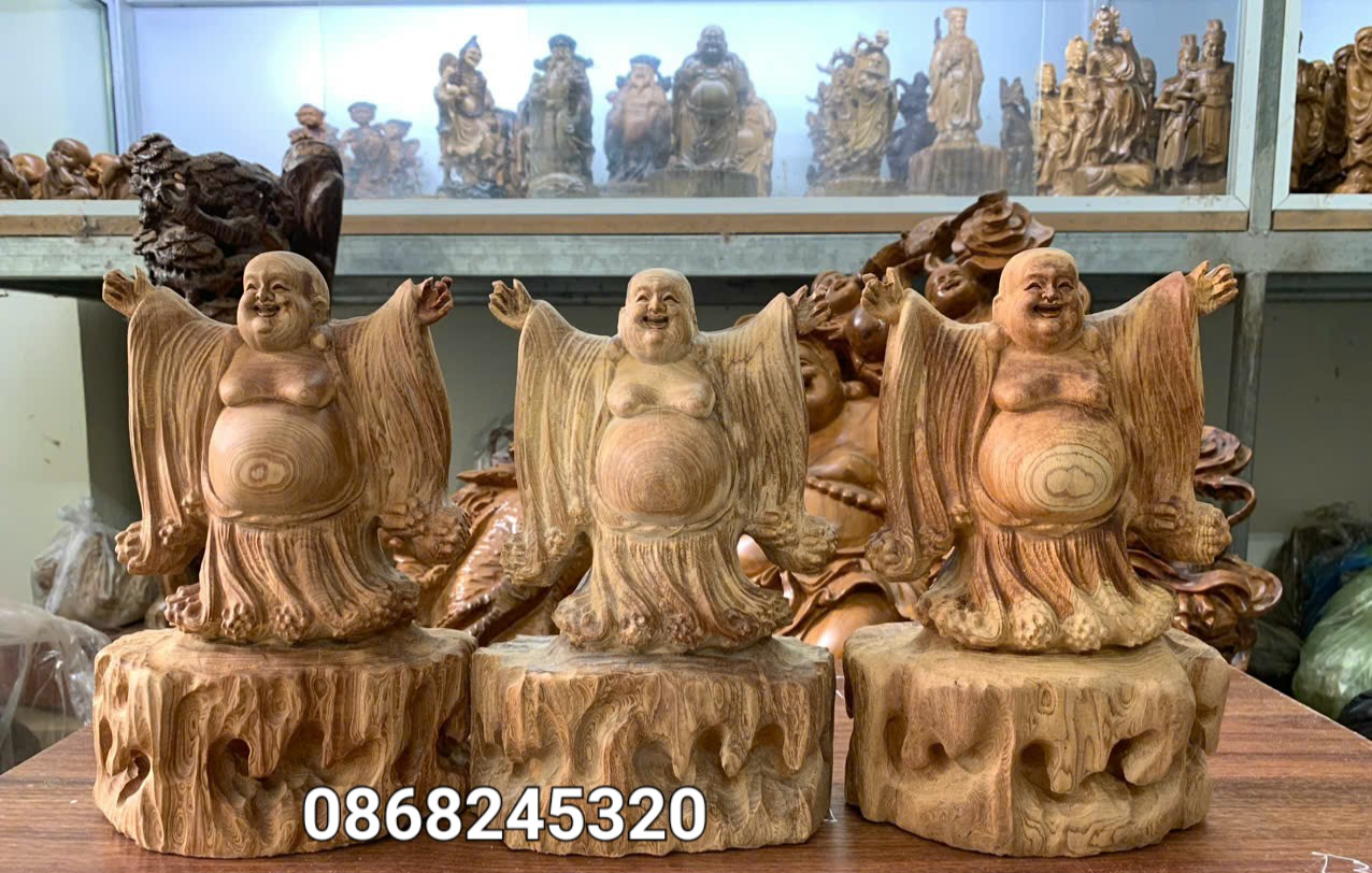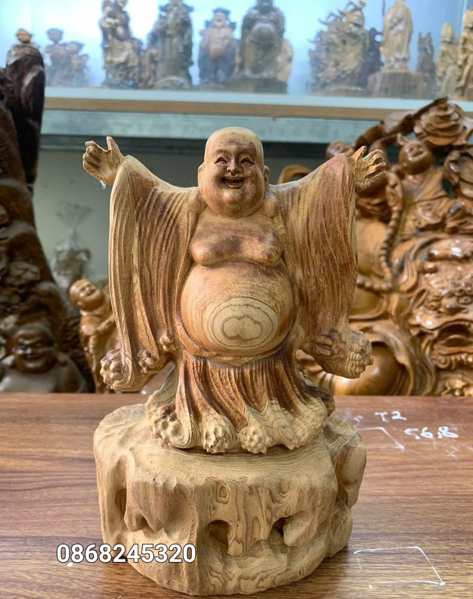 Mua tại TiktokTượng phật di lặc nghênh hỷ được làm bằng chất liệu gỗ ngọc am liền khối tự nhiên 100% Kt cao 22×17×6cm