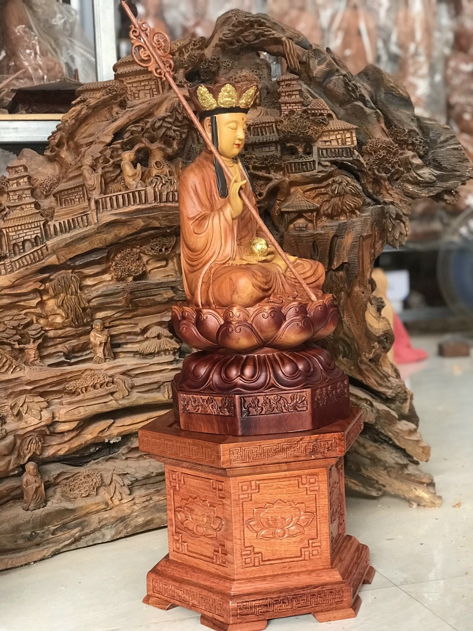 Mua tại TiktokTượng phật địa tạng vương bồ tát được làm bằng chất liệu gỗ hương đá liền khối tô làm mầu giả cổ Kích thước cao 40×15×15cm _ Tượng phật địa tạng vương bồ tát được trạm khắc tỉ mỉ tinh sảo kỳ công ,Tượng được làm và hoàn thiện do bàn tay khối óc tài hoa ,Từ những người thợ dầy rặn kinh nghiệm cũng như tay nghề cao trong làng nghề nghề truyền thống ,Chính vì thế tượng phật đị tạng vương bồ tát đã đáp ứng đầy đủ những tiêu trí ( Đẹp bền rẻ ) Thẩm mỹ nghệ thuật với chất lượng tuyệt vời